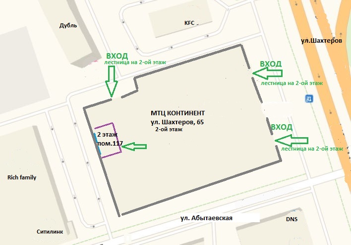 - Центральный р-н, ул. Шахтеров, 65 (ТК "Континент", 1 линия). 2